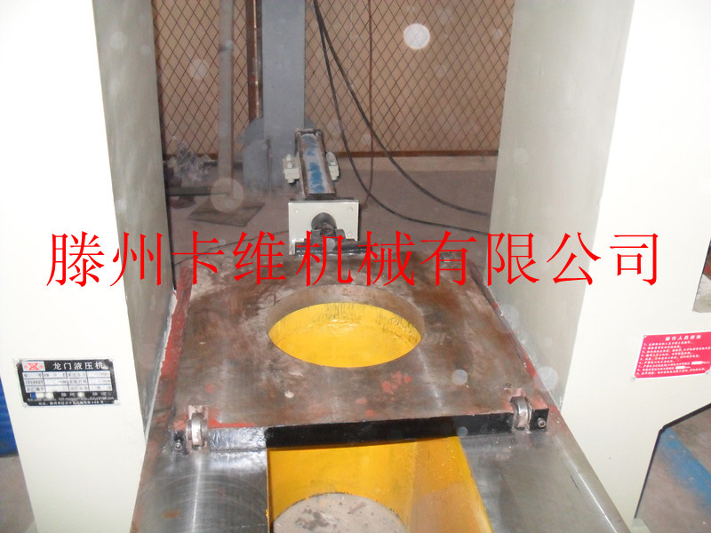1、主機(jī)部分:該機(jī)器為龍門式液壓機(jī),油缸裝在機(jī)頂?shù)锥藘?nèi)孔上,卡頭裝在油缸柱塞下端,與柱塞一起作用上下往復(fù)運(yùn)動。